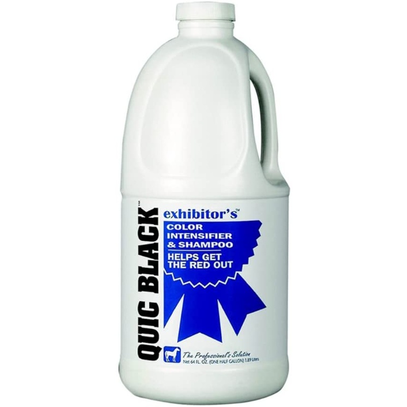 Exhibitors Quic Black Dark Intensifier & Shampoo intensifies black and reduces reds in black coats. Producing saturated, rich color with brilliant highlights, Quic Black Dark Intensifier & Shampoo restores color to clipped or sunburned coats.